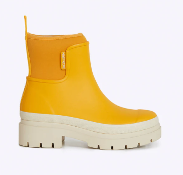 Tully Ankle Boot • A more fashion-forward version of the Bobbi, the Tully Boot features a chunkier heel and a wrap-around neoprene cuff, inspired by 90s style. It comes up 2cm higher and is 20% heavier than the Bobbi, offering a bolder look while still keeping your feet dry. | ![]() |